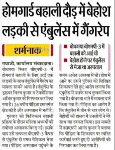 बोधगया स्थित बीएमपी-3 में होमगार्ड बहाली के लिए आई एक लड़की के साथ एंबुलेंस में गैंगरेप का मामला सामने आया है। एंबुलेंस के ड्राइवर विनय कुमार व टेक्नीशियन अजित कुमार को गिरफ्तार कर लिया गया है। 26 वर्षीय पीड़िता इमामगंज क्षेत्र की है और अस्पताल में भर्ती है। गुरुवार को फिजिकल बहाली प्रक्रिया के दौरान महिला अभ्यर्थी की तबीयत अचानक बिगड़ गई