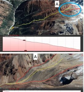 प्रथम दृष्टया अवलोकन: धराली गांव से लगभग 7 किमी ऊपर की ओर, समुद्र तल से लगभग 6,700 मीटर की ऊंचाई पर स्थित, हिमनदों से बने मोटे तलहटी निक्षेपों का एक महत्वपूर्ण समूह पाया गया है. इन निक्षेप अनुमानित ऊर्ध्वाधर मोटाई 300 मीटर है. इसका क्षेत्रीय विस्तार 1.12 वर्ग किमी है. इसकी संरचना अनुमानित हिमोढ़ और हिमनद-नदी पदार्थ की है.अवस्था की बात करें तो एक लटकते हिमनद गर्त के भीतर स्थित असंगठित पिंड है.