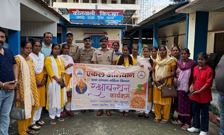 थाना परिसर में खास अंदाज में मनाया गया रक्षाबंधन का त्योहार, एकल अभियान की बहनों ने पुलिस कर्मियों एवं देवभूमि व्यापार मंडल पदाधिकारियों को बांधी राखी, तिलक लगाकर खिलाई मिठाई
