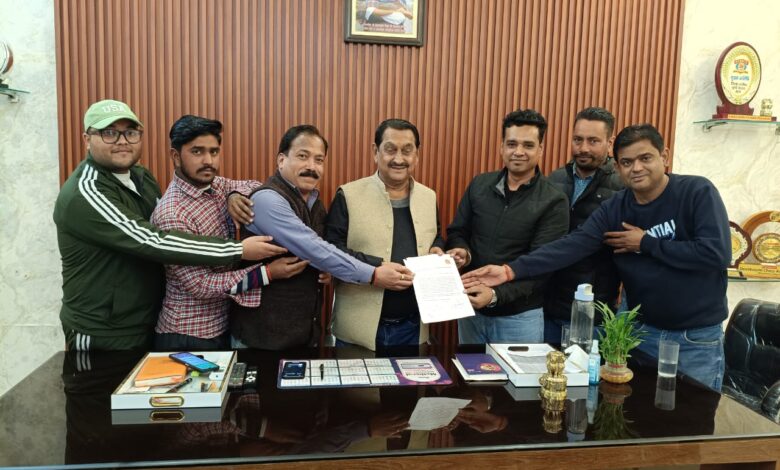 सोनू गुप्ता के नेतृत्व में भवानी सैनिकों ने विधायक तिलकराज बेहड़ को सौंपा ज्ञापन